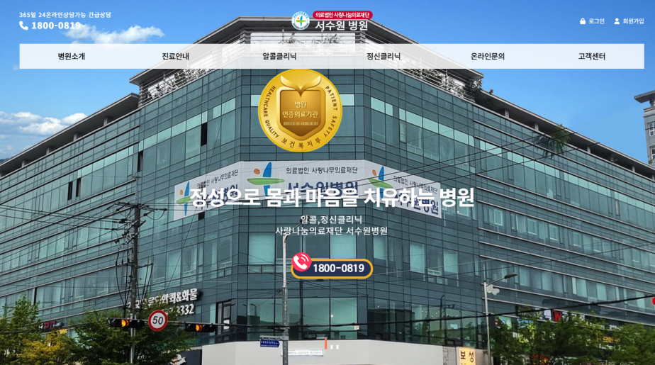 서수원병원 페이지 정보 작성자 관리자 작성일17-06-15 13:46 조회3,172회 댓글0건 관련링크 이전글 다음글 목록 본문 http://soscenter.co.kr/ 댓글목록 등록된 댓글이 없습니다. 이전글 다음글 목록